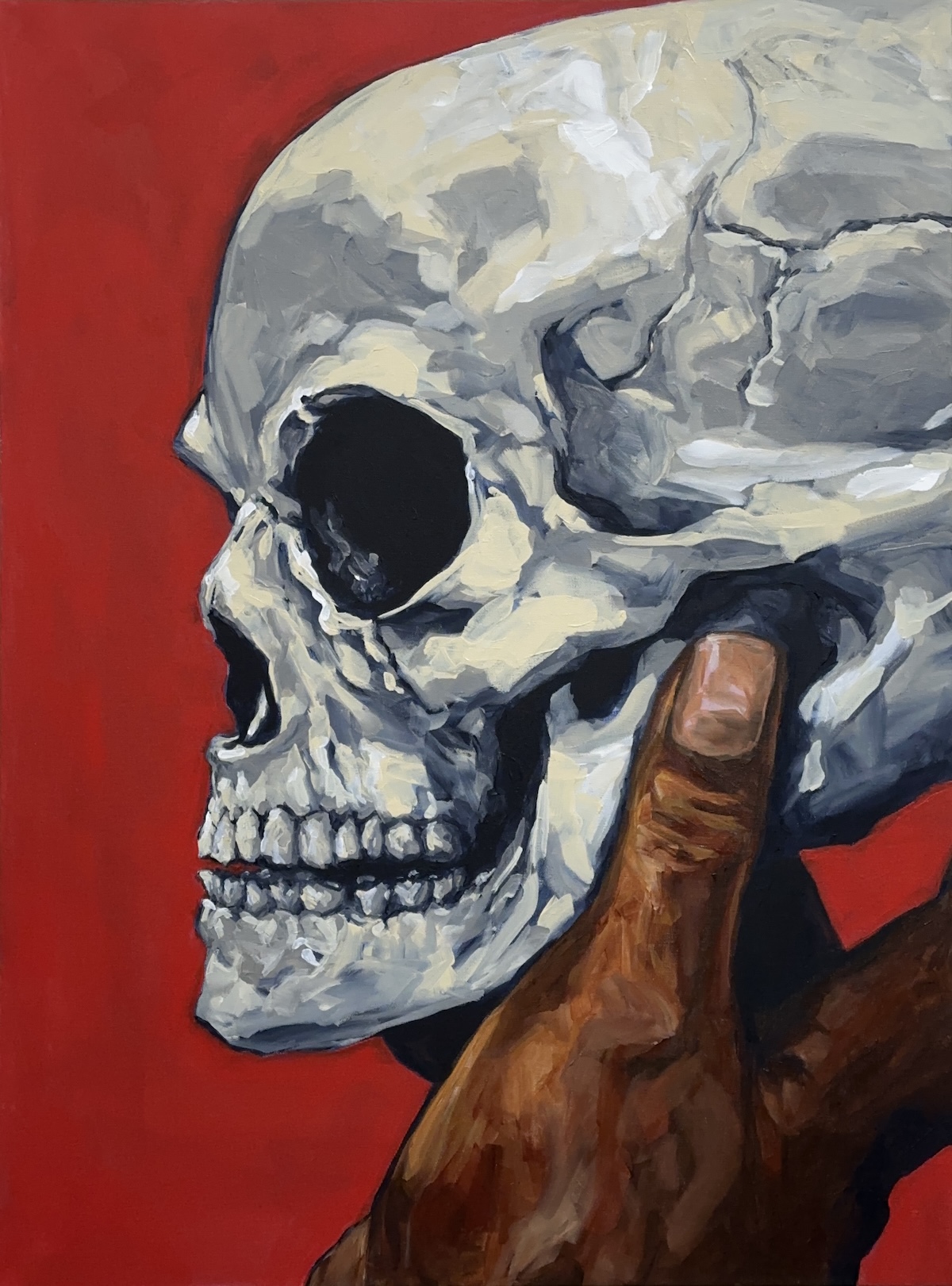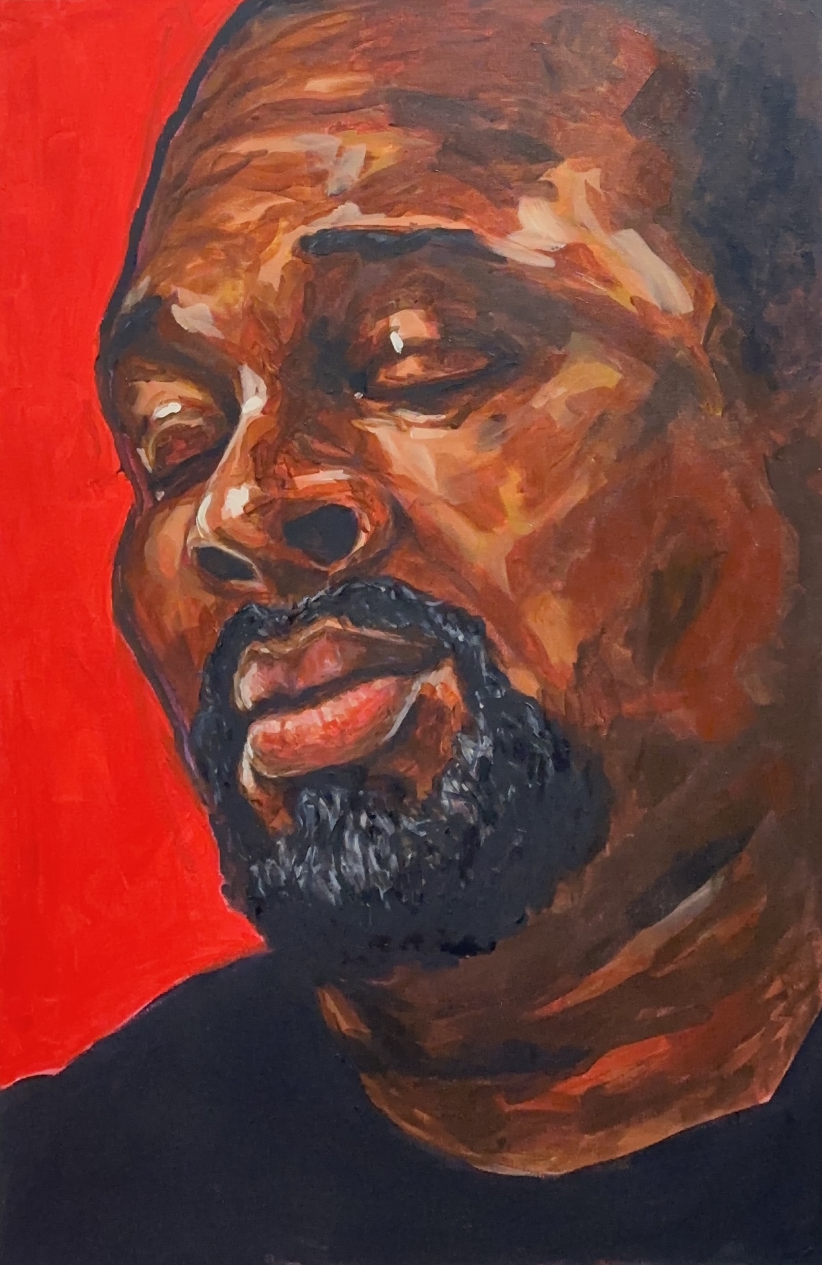 “Portrait of the Artist’s Father, Yellow Wall” 2025. Acrylic on canvas. 48 x 30.“Red Room #17” 2025. Acrylic on canvas. 24 x 36.“Self Portrait in Red Room-Breathing, Still” 2026. Acrylic on canvas. 24 x 36.“‘Ello Puddin’, Black Sweater, Blue Gray Wall” 2025. Acrylic on canvas. 20 x 24.“Study #2 for Middle Passage” 2025. Acrylic on panel. 12 x 16. “Self Portrait in Black Sweater, Blue Wall” 2025. Acrylic on canvas. 24 x 20.“Brock, Grey Wall” 2026. Acrylic on canvas. 20 x 24. “The Guv’nah, Black Shirt, Blue Wall” 2025. Acrylic on canvas. 20 x 24.“Portrait of the Artist’s Mother, White Jacket, Blue Wall” 2025. Acrylic on canvas. 16 x 20.“Middle Passage” 2025. Acrylic on canvas. 60 x 48.“Nathon, Black Shirt, Hooker Green Wall” 2025. Acrylic on canvas. 20 x 24.“‘Alas, poor Yorick” 2026. Acrylic on canvas. 30 x 40.“Study for Middle Passage” 2025. Acrylic on panel. 12 x 16.